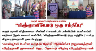 கரூர், டிசம்பர் 15: கரூர் பரணி வித்யாலயா சீனியர் செகண்டரி பள்ளியின் உயர்கல்வி வழிகாட்டுதல் மையம் (Career Guidance Centre) சார்பில், இன்று “விஞ்ஞானியோடு ஒரு சந்திப்பு” (Meet The Scientist) என்ற சிறப்பு நிகழ்ச்சி நடைபெற்றது. இந்நிகழ்ச்சியில், கான்பூரிலுள்ள மத்திய தோல் ஆராய்ச்சி நிறுவனத்தின் (CSIR – CLRI) விஞ்ஞானி முனைவர் ஜெய பிரகாஷ் அவர்கள் சிறப்பு விருந்தினராகக் கலந்து கொண்டு மாணவர்களுடன் கலந்துரையாடினார். நிகழ்ச்சியின் போது, மாணவர்கள் …