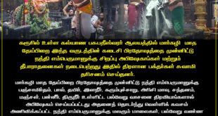 கரூரில் உள்ள கல்யாண பசுபதீஸ்வரர் ஆலயத்தில் மார்கழி மாத தேய்பிறை இந்த வருடத்தின் கடைசி பிரதோஷத்தை முன்னிட்டு நந்தி எம்பெருமானுக்கு சிறப்பு அபிஷேகங்கள் மற்றும் தீபாராதனைகள் நடைபெற்றது இதில் திரளான பக்தர்கள் சுவாமி தரிசனம் செய்தனர். கரூர் மாநகராட்சி மையப்பகுதியில் வீற்றிருக்கும் அருள்மிகு ஸ்ரீ கல்யாண பசுபதீஸ்வரர் ஆலயத்தில் இன்று வருடத்தின் கடைசி பிரதோஷத்தை முன்னிட்டு நந்தி எம்பெருமானுக்கு சிறப்பு தீபாராதனை மற்றும் அபிஷேகங்கள் நடைபெற்றது மார்கழி மாத தேய்பிறை …