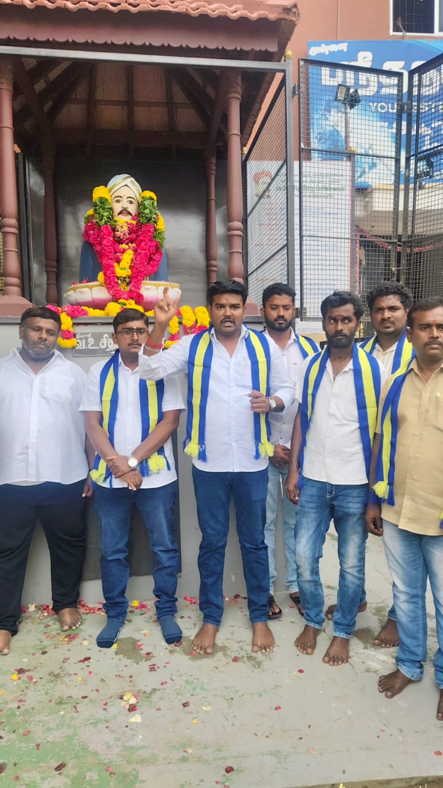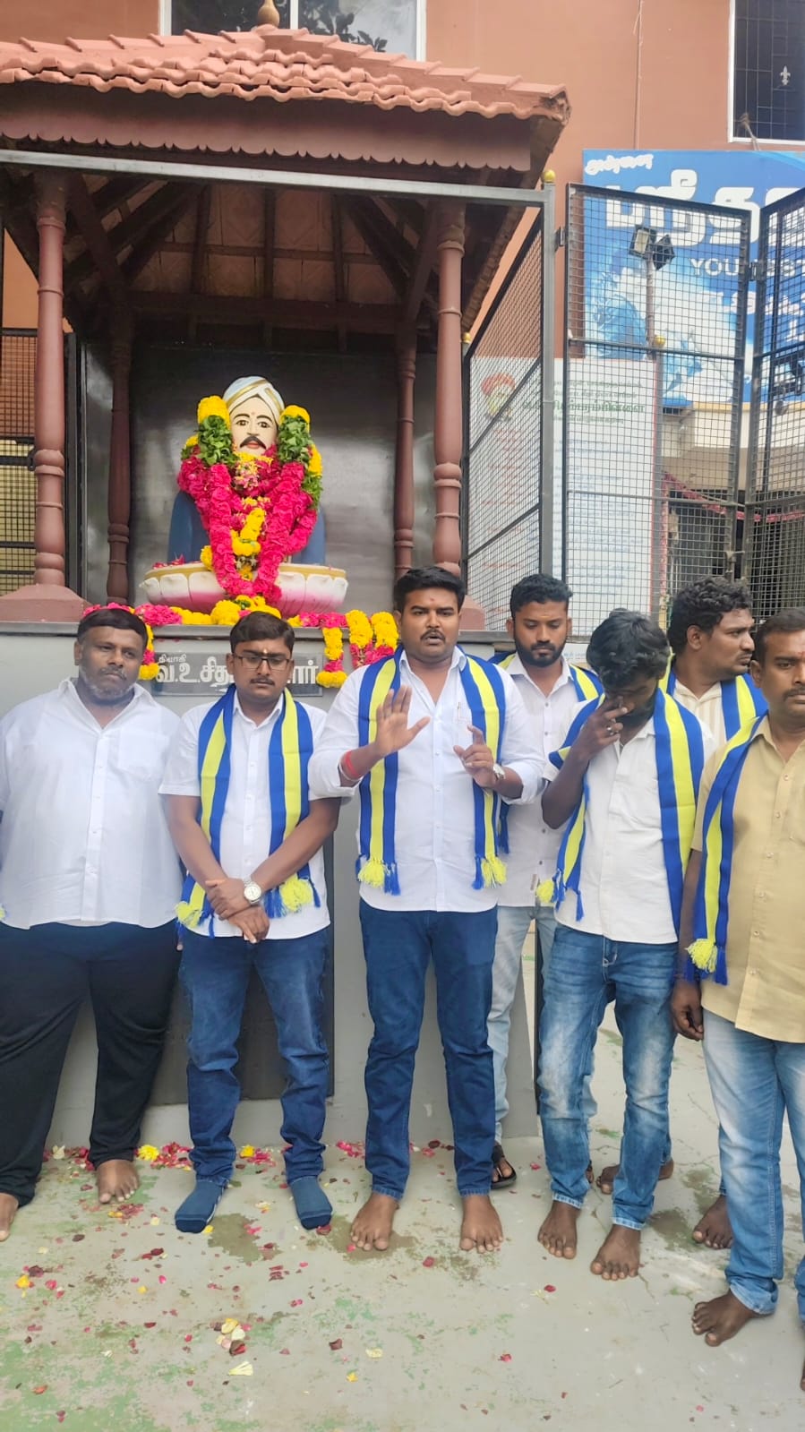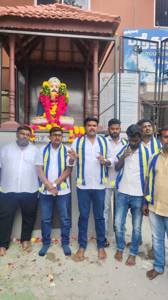 கரூர் அடுத்த தாந்தோன்றிமலை பகுதியில் யூனியன் அலுவலகம் அருகே அமைந்துள்ள செக்கிழுத்த செம்மல் ஐயா வ உ சிதம்பரனார் அவர்களின் திரு உருவச்சிலைக்கு, இன்று 89 வது நினைவு தினத்தையொட்டி அவரது திருவுருவச்சிலைக்கு தமிழக நீதிக்கட்சியின் சார்பில், அக்கட்சியின் தலைவர் ஜெகன் தலைமையில், மாநிலப்பொதுச்செயலாளர் வழக்கறிஞர் பாஸ்கரன் முன்னிலையில் கட்சி நிர்வாகிகள் ஏராளமானோர் கலந்து கொண்டு சுதந்திர போராட்ட தியாகி வ உ சி அவர்களுக்கு புகழாஞ்சலி செலுத்தினர்.