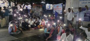 விருதுநகரில் கைப்பேசி ஒளி மூலம் தங்களது எதிர்ப்பை பதிவு செய்து போராட்ட களத்தில், இரவு பகலாக போராட்டம் நடத்தி வருகின்ற செவிலியர்களுக்கு ஆதரவாக களத்தில் நின்று தமிழக வெற்றி கழகத்தினர் ….